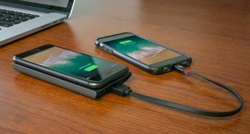 Scosche har lavet denne smarte trådløse mobiloplader med en powerbank der bliver ladet op, når den er sat til i docken og mobiltelefonen bliver ladet op trådløs, når man stiller den op af powerbanken.