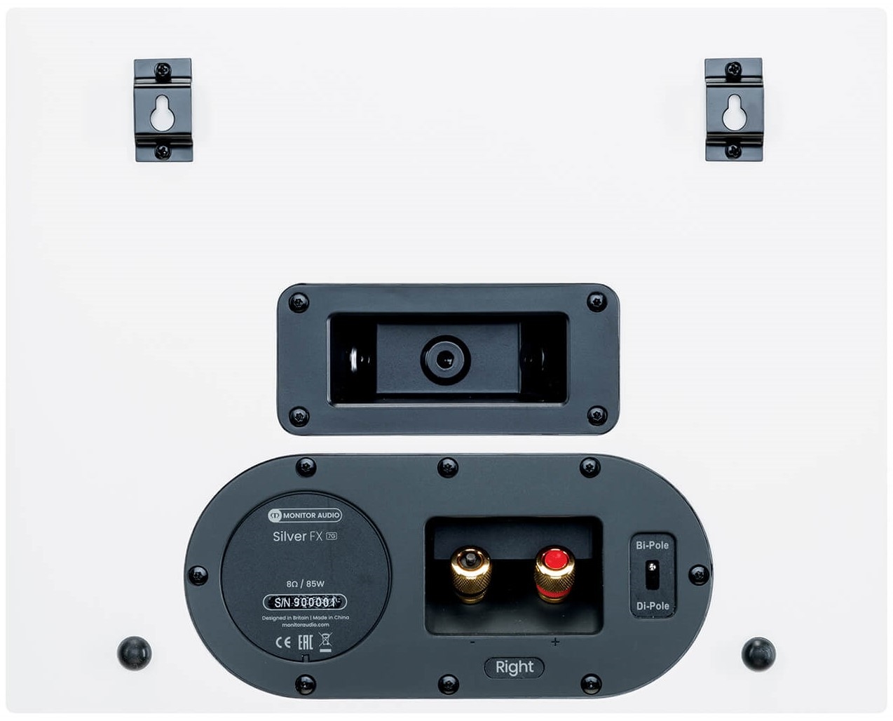 Silver FX 7G er designet til at hænge helt plant på væggen via de to kroge, som er på bagsiden af baghøjttaleren og det gøre samtidig nemt for dig, at hænge baghøjttaleren op på væggen.