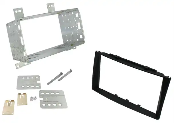 En radioramme er tilpasset til bilens interiør og gør det muligt, at man kan eftermontere enten til en 1-DIN eller 2-DIN radio.