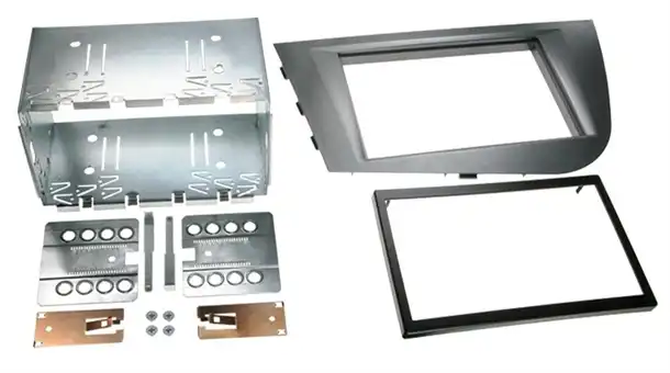 En radioramme er tilpasset til bilens interiør og gør det muligt, at man kan eftermontere enten til en 1-DIN eller 2-DIN radio.