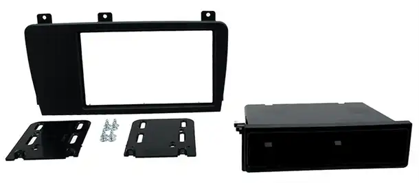 En radioramme er tilpasset til bilens interiør og gør det muligt, at man kan eftermontere enten til en 1-DIN eller 2-DIN radio.