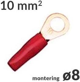 Ringkabelsko 10mm² Rød ø8, 1 stk