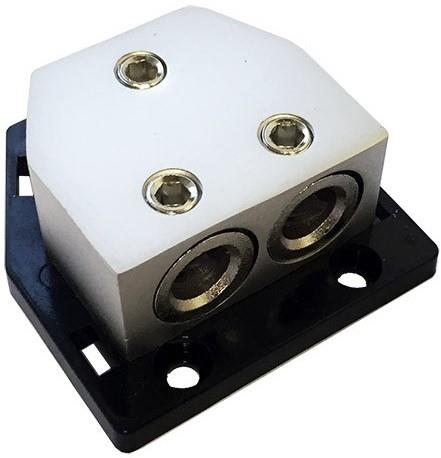 Denne fordeler blok fra 4Connect er beregnet til at opdele et strømkabel ud til to strømkabler. Der er plads til 20 og 50mm2 kabel.