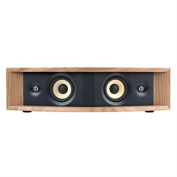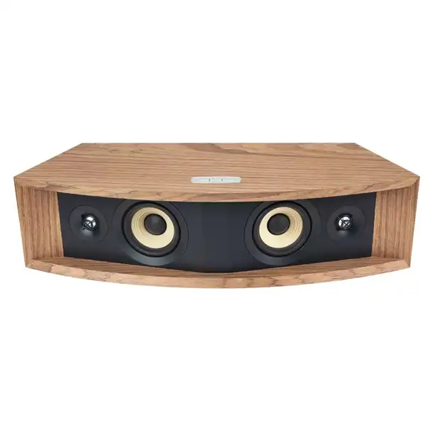 Front-ported tabletop style cabinet available in black walnut or natural walnut furniture-grade wood veneer