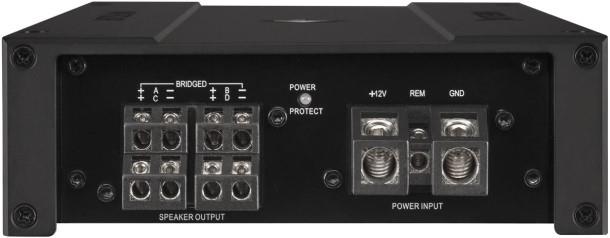 Den er meget velegnet til montering i små aflukkede rum f.eks. under en bundplade eller lignende. Forstærkeren kan konfigureres som 2, 3 eller 4 kanaler da forstærkeren kan brokobles, f.eks. til en subwoofer og et sæt højttalere.