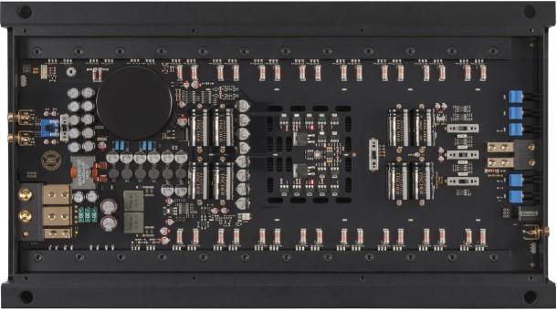 Active, adjustable crossover, bass boost, HDM slot, input mode switch, TwinPower Link, Start-Stop capability