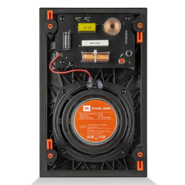 JBL Stage 260W er en 2-vejs væghøjttaler som spiller rigtig godt, med nøjagtig lydgengivelse og kraftfuld basrespons. Den er udstyret med en 1" aluminium diskant højttalerenhed og HDI (High Deifnition Imaging) akustisk horn, som giver et jævnt frekvensrespons samt bred lyd dækning i rummet og en 6.5" bas/mellemtone højttalerenhed med Polycellulose membran.