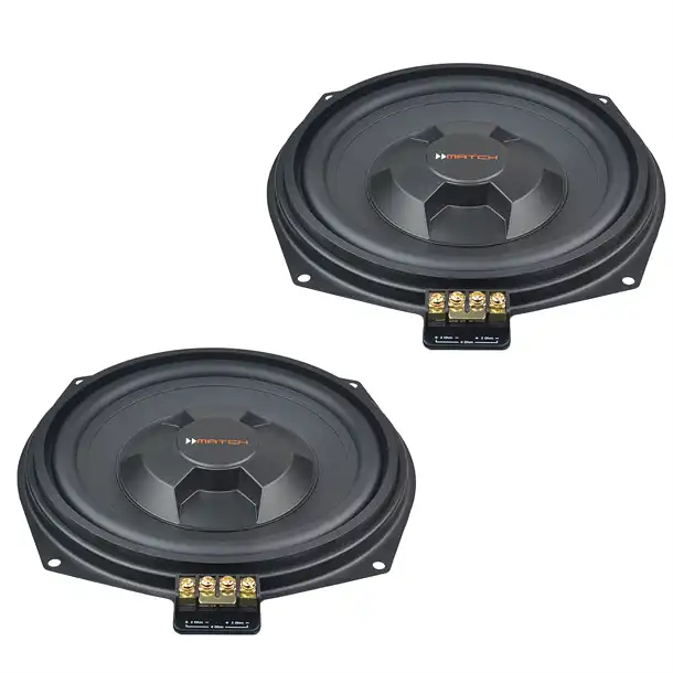 Match MW 8BMW-D er speciel udviklet til BMW og Mini bilmodeller, som er den ideelle opgradering til solid bas i din bil. Med Plug & Play-stik, er installationen enkelt og de passer i de originale monteringspositioner under sæderne.