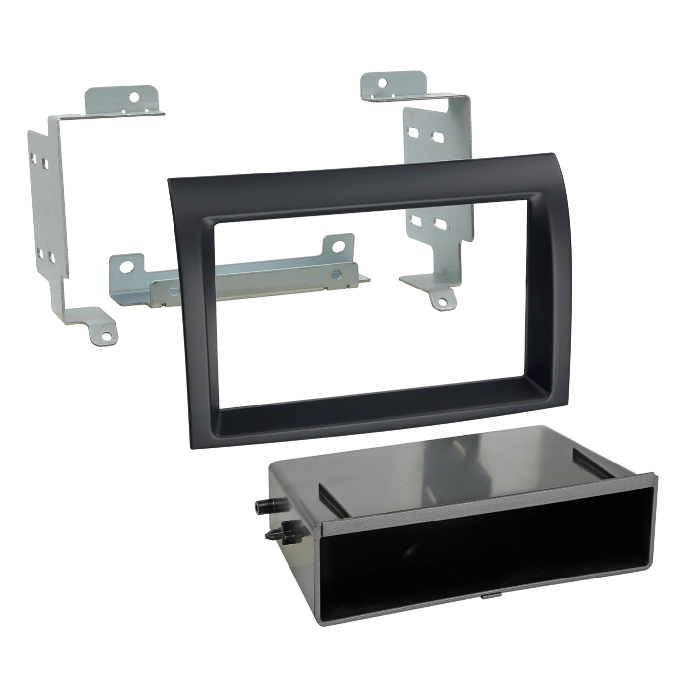 En radioramme er tilpasset til bilens interiør og gør det muligt, at man kan eftermontere enten til en 1-DIN eller 2-DIN radio.