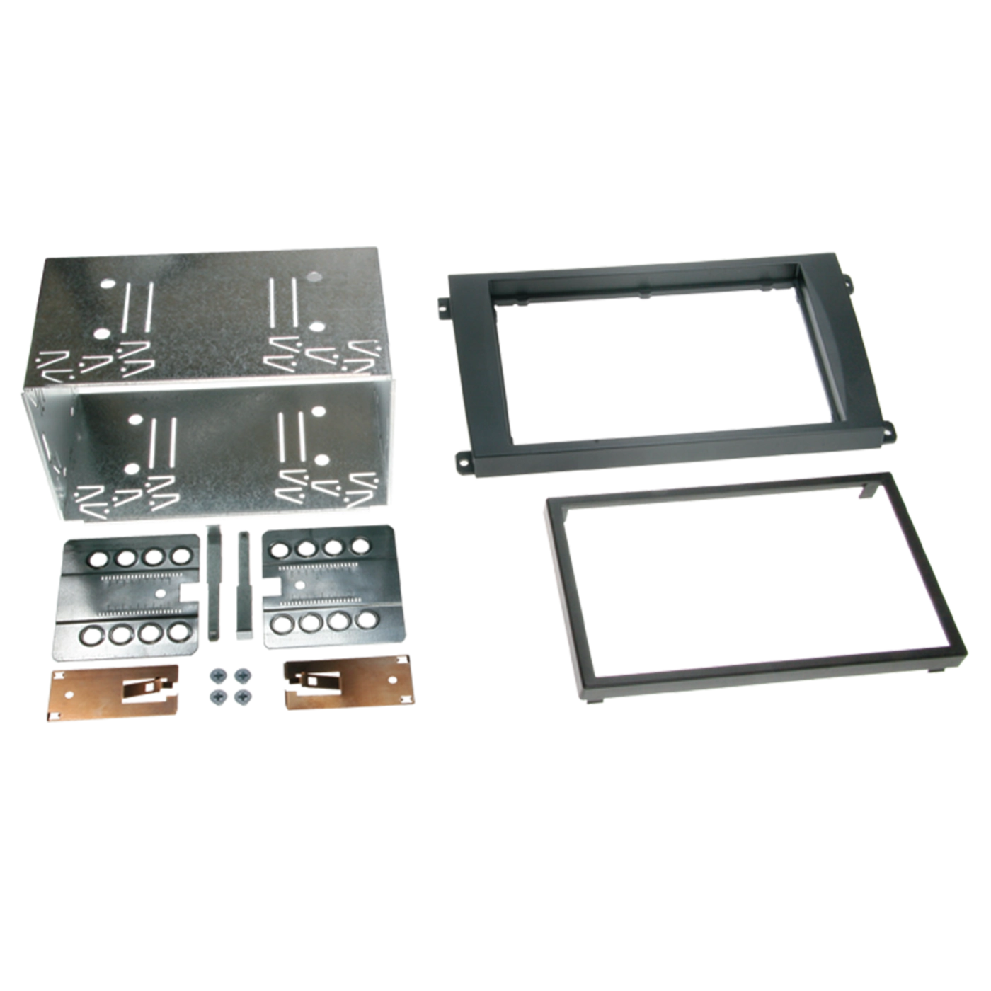 En radioramme er tilpasset til bilens interiør og gør det muligt, at man kan eftermontere enten til en 1-DIN eller 2-DIN radio.